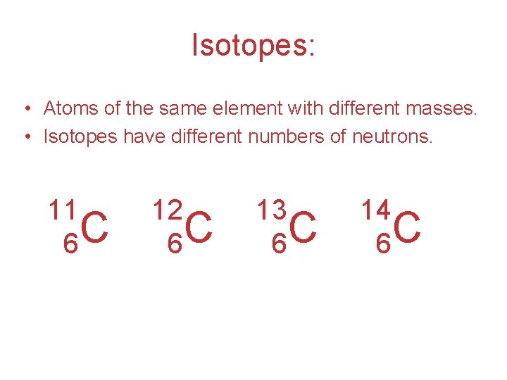 Isotopes are atoms of the same element but with different numbers of neutrons. are examples.